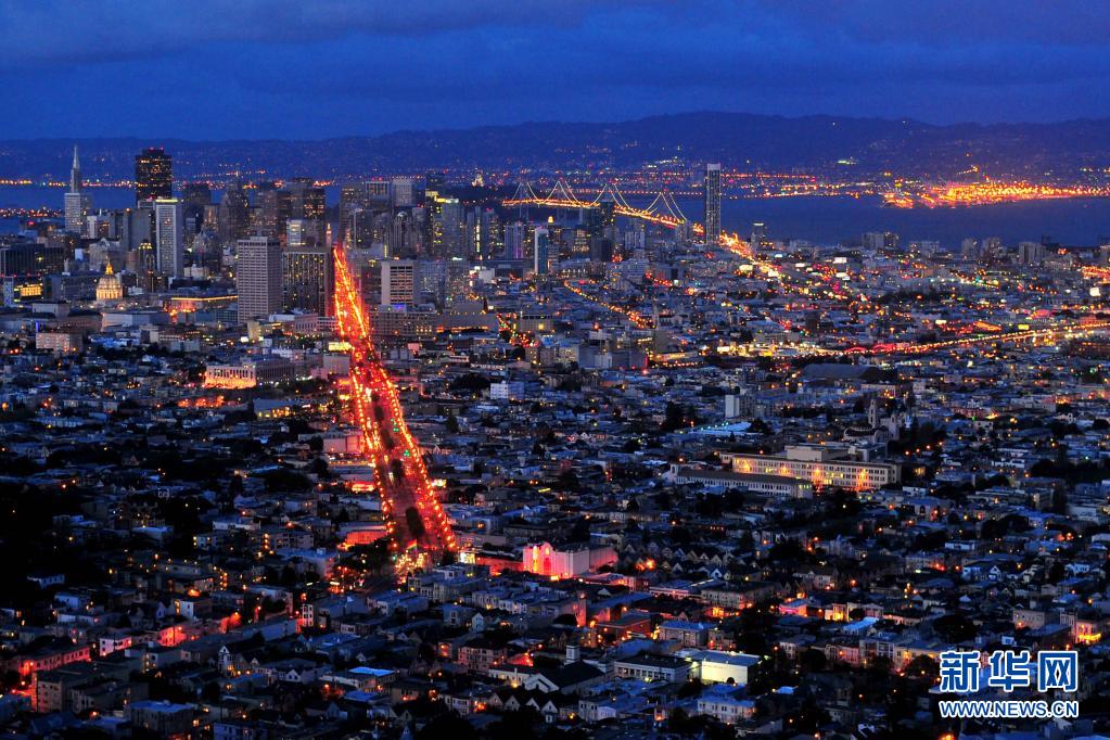 这是美国旧金山湾区夜色(2012年4月11日摄)。新华社发(刘艺霖摄)