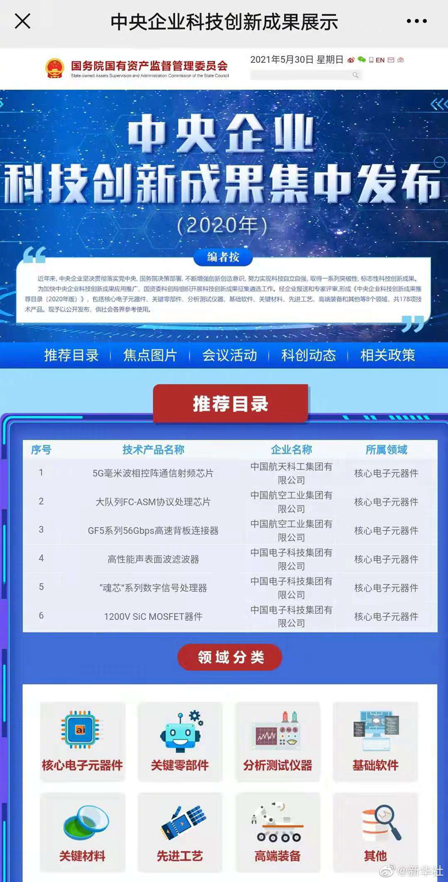 5月30日是第五个全国科技工作者日,国务院国资委向全社会发布《中央企业科技创新成果推荐目录(2020年版)》,包括核心电子元器件、关键零部件、分析测试仪器、基础软件、关键材料、先进工艺、高端装备以及其他等8个领域共178项技术产品。下一步,国资委将建立促进科技创新成果应用推广相关工作机制,组织开展各类成果推介活动,促进供需深度对接,推动科技创新成果在中央企业及产业链上下游广泛应用。(记者王希)