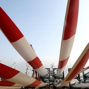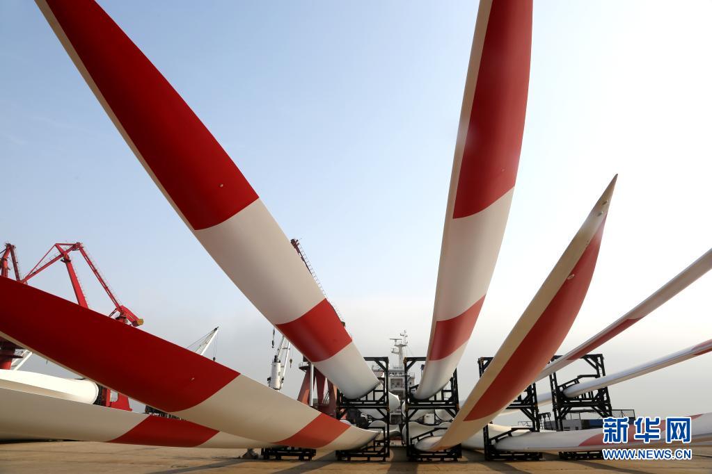 5月31日,在江苏连云港港东方公司码头,风力发电机叶片等待装船。国家统计局服务业调查中心、中国物流与采购联合会5月31日发布数据,5月份,中国制造业采购经理指数(PMI)为51.0%,微低于上月0.1个百分点,继续位于临界点以上,制造业保持平稳扩张。 新华社发(王春 摄)