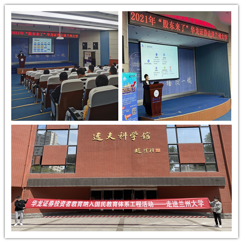 金融知识进校园。华龙证券和华龙期货以“投资者教育纳入国民教育体系”为主题,通过开展金融、期货知识进校园活动,进一步优化、创新校企合作模式,提高大学生金融知识储备,提升金融素养,培育金融人才,壮大成熟的投资者队伍。华龙证券为兰州大学及研究生院学生带去“中国债券市场的变革和发展”讲座,华龙期货为甘肃农业大学学生带去“期货与我们的生活”讲座。