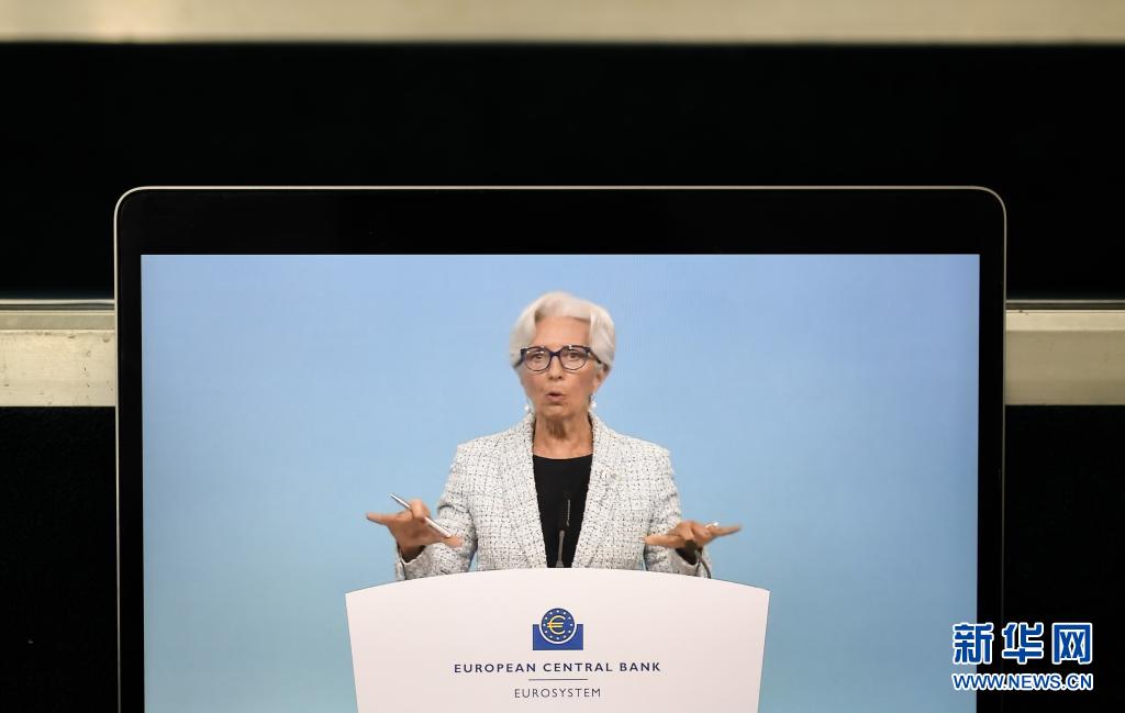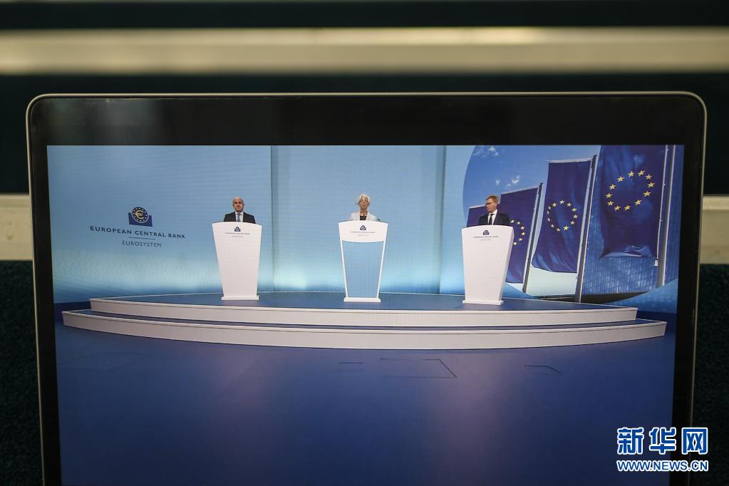 这是6月10日在德国法兰克福拍摄的欧洲央行货币政策例会后新闻发布会的视频直播画面。新华社记者 逯阳 摄