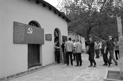 太行山高速沿太行山东麓蜿蜒而行,北起北京门头沟,南接河南林州,全长680公里,于2018年底全线贯通。在河北省境内,太行山高速纵贯张家口、保定、石家庄、邢台、邯郸5个设区市,途经19个县(市、区),覆盖全部太行山革命老区,宛如一条玉带将西柏坡、城南庄、抗日军政大学旧址、129师司令部旧址等红色地标串联起来,成为一条“红色旅游路”。图为参观者在河北省平山。