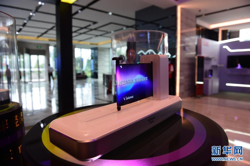 这是维信诺科技股份有限公司展出的可自由弯曲折叠的柔性显示屏。新华社记者 黄博涵 摄