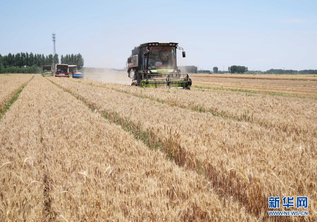 6月13日,河北省衡水市阜城县崔家庙镇前砖门村农民在麦田收获小麦。新华社记者 朱旭东 摄