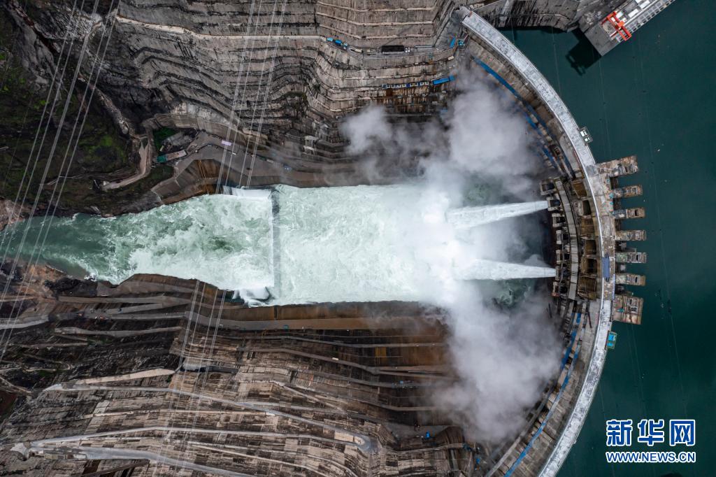 6月28日拍摄的正在发电运行的白鹤滩水电站。新华社记者 江文耀 摄