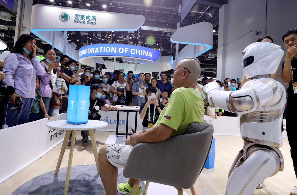7月8日,观众在2021世界人工智能大会上参观。新华社发(胡智轩 摄)