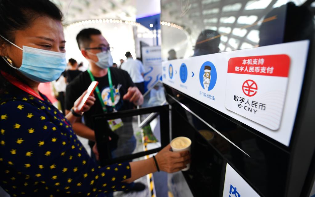 5月8日,在首届中国国际消费品博览会上,参会者在体验数字人民币咖啡机。新华社记者 郭程 摄