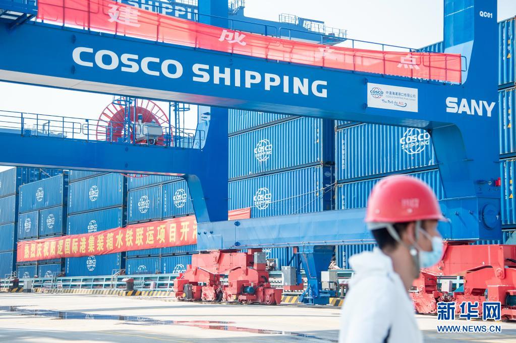 新华社武汉8月1日电(记者王贤)8月1日9时28分,随着武汉阳逻国际港水铁联运二期一处岸桥启动装卸作业,钢铁巨臂从船上精准抓取一个集装箱,越过船舷放在无人驾驶的集装箱卡车上,随后集卡车沿着规划路线自动驾驶前行;不远处的码头铁路作业区,装有50个集装箱的货运班列缓缓从“武汉港站”开出……