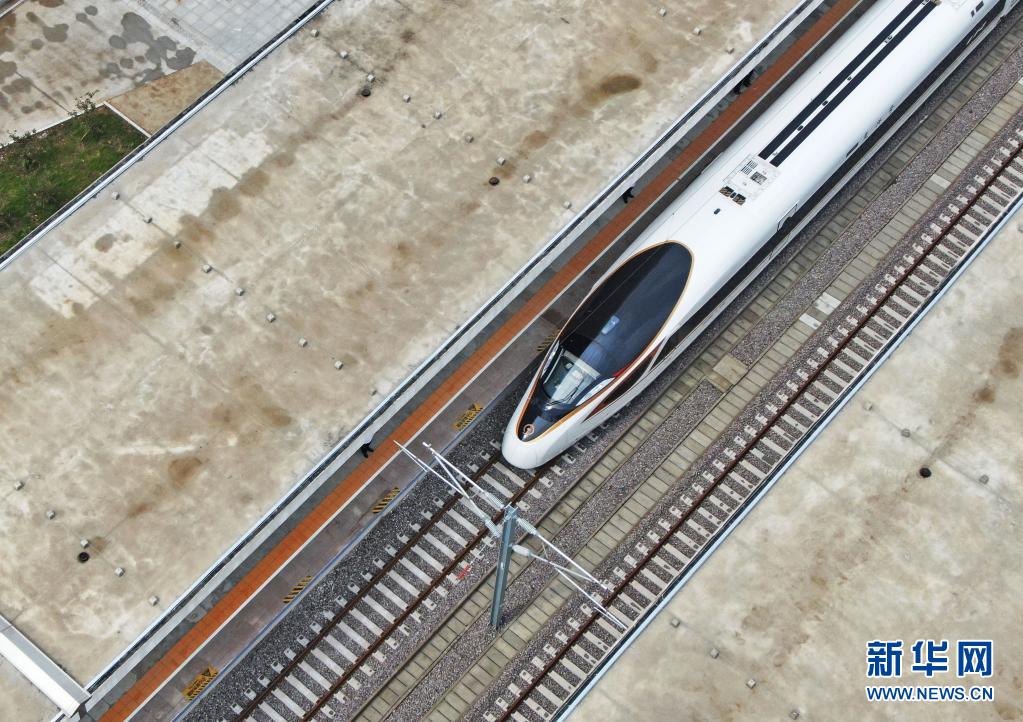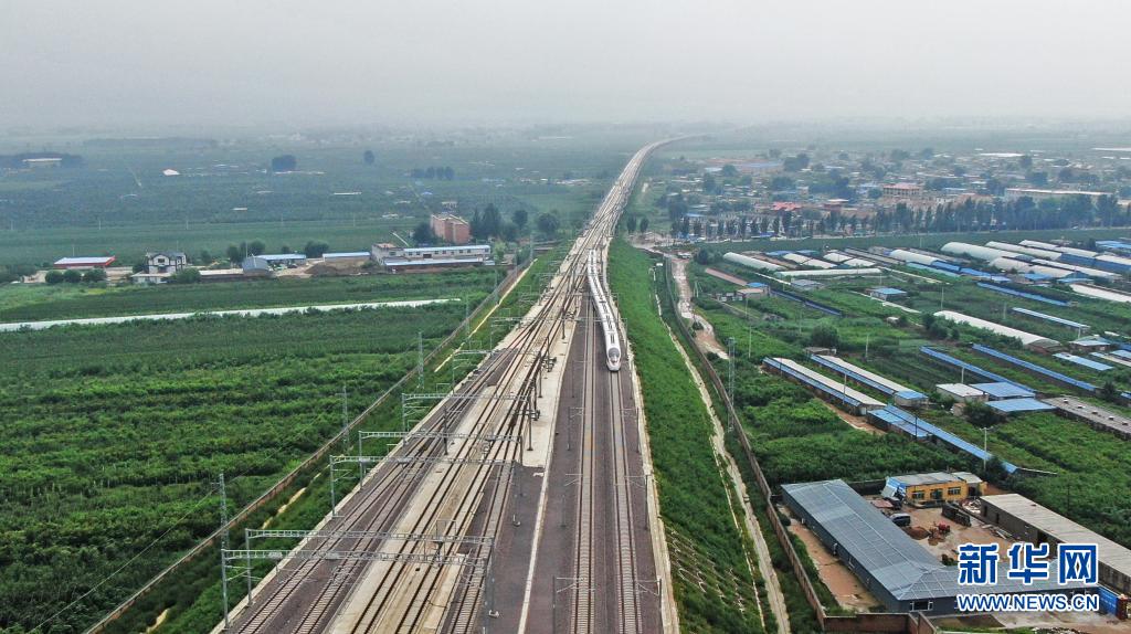 这是8月3日拍摄的朝凌高铁首趟从锦州北站发车驶向大连方向的G9147次列车(无人机照片)。 新华社记者 杨青 摄