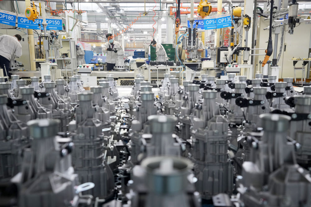 4月15日,在哈尔滨东安汽车动力股份有限公司生产车间,工人在进行生产作业。 新华社记者王建威摄