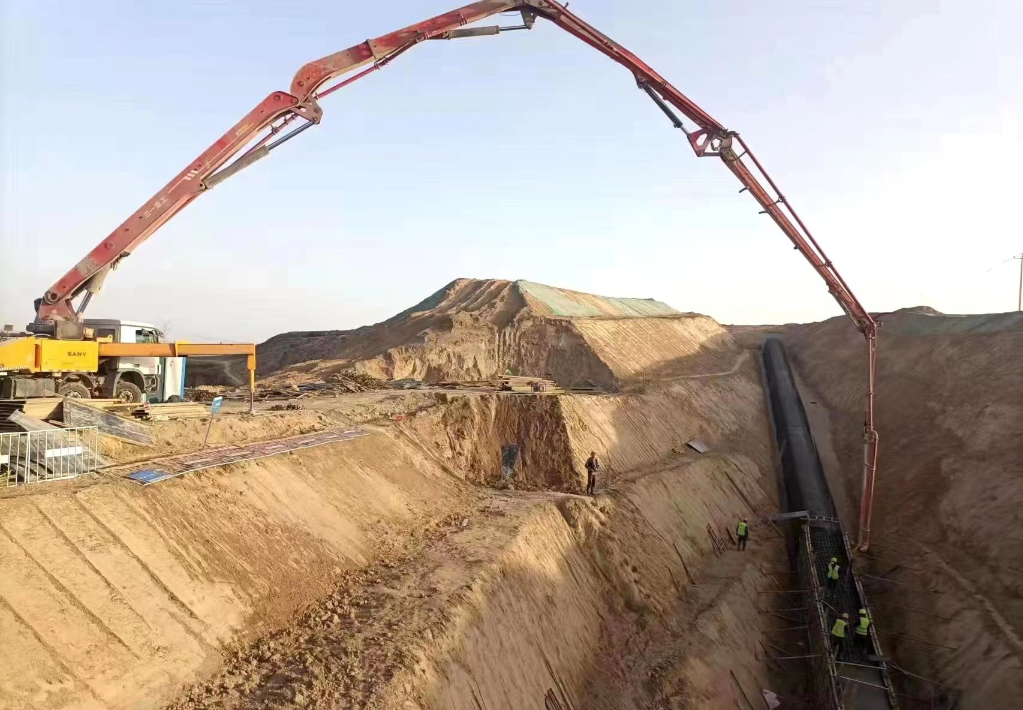 宁夏清水河流域城乡供水工程施工现场。(宁夏水利厅供图)