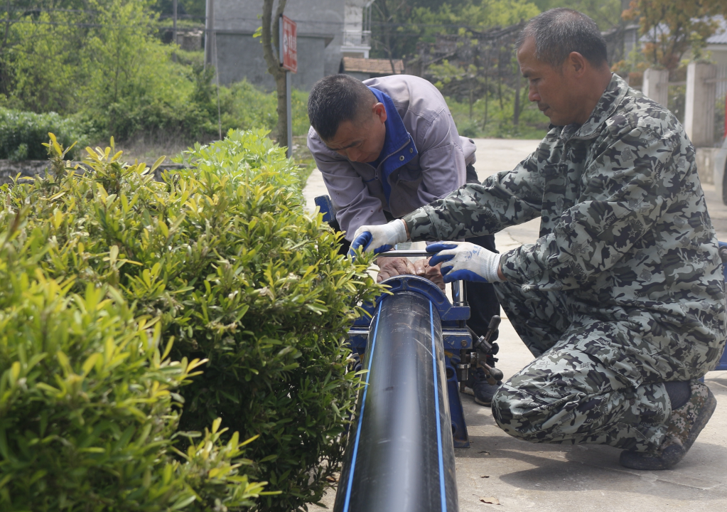 德安县付山村自来水管网安装。(德安县水利局供图)