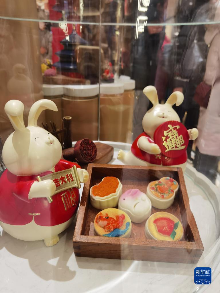 2月1日在北京稻香村“零号店”拍摄的“福兔献瑞”系列糕点。 新华社记者 谢希瑶 摄