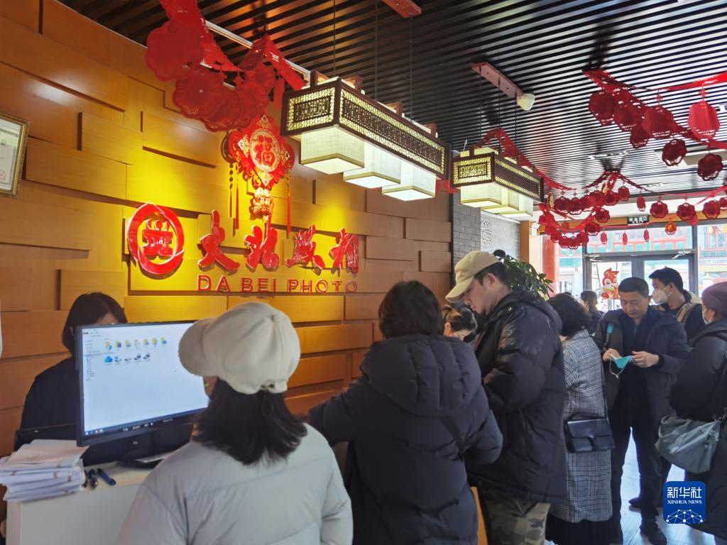 一张照片,纪念团圆,传承记忆。从小就在大北照相馆照相的宫先生也带着自己的孩子前来拍照。“家里有这个传统,也想给孩子留下美好的回忆。”开年以来,大北照相门市日均客流量2643人次,销售同比增加45%,日均客流量同比增加37%,客流量最大时要排队3个小时。