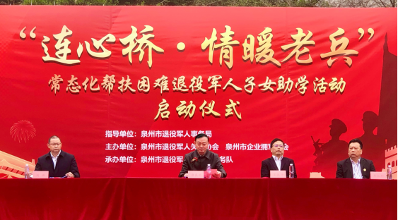 2月22日上午,“连心桥·情暖老兵”——常态化帮扶困难退役军人子女助学活动项目启动仪式在泉州市丰泽区红星爱国教育产业园举行。今年来,泉州市退役军人事务局创新性开展“连心桥·情暖老兵”子女助学常态化帮扶项目,切实帮助解决75名困难退役军人学龄子女在生活学习中的实际困难,通过“一对一”“多对一”“一对多”等形式,确保每年每位对象获助5000元,此次活动帮扶资金共计37.5万元。