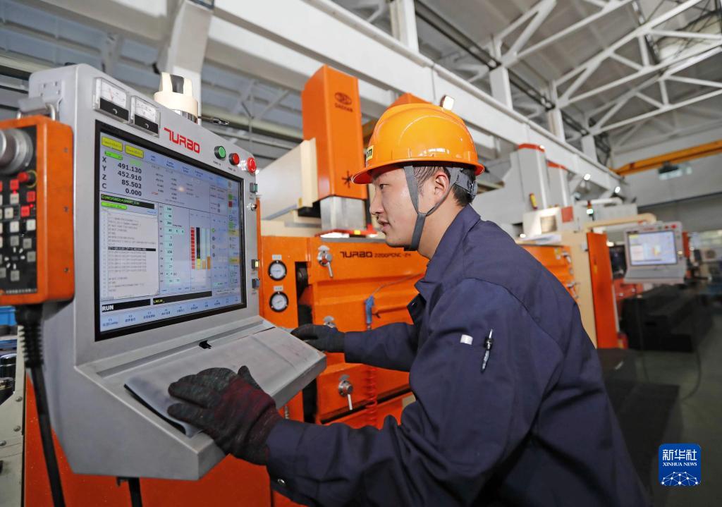宁波臻至机械模具有限公司的工人在加工模具(资料照片,2021年3月摄)。新华社发 (王鹏 摄)