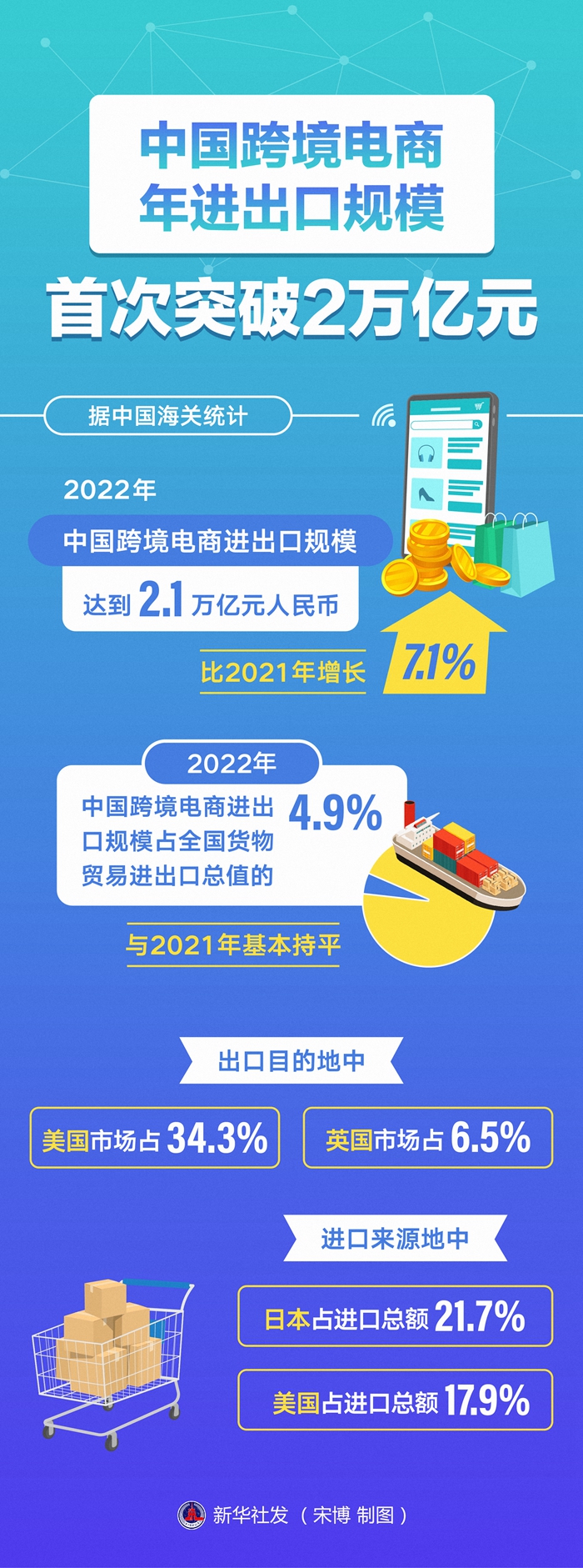 新华社石家庄6月17日电 17日,在第40届中国·廊坊国际经济贸易洽谈会国际跨境电商发展论坛上,海关总署介绍2022年我国跨境电商进出口情况时说,中国跨境电商进出口规模首次突破2万亿元人民币,达到2.1万亿元人民币,比2021年增长7.1%,跨境电商为我国外贸发展注入新动能。