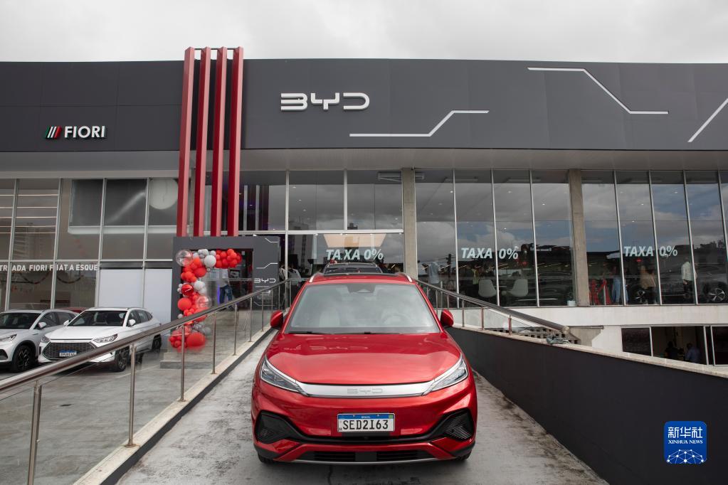 这是7月4日在巴西巴伊亚州首府萨尔瓦多拍摄的一家比亚迪纯电动汽车销售店铺。新华社记者 王天聪 摄