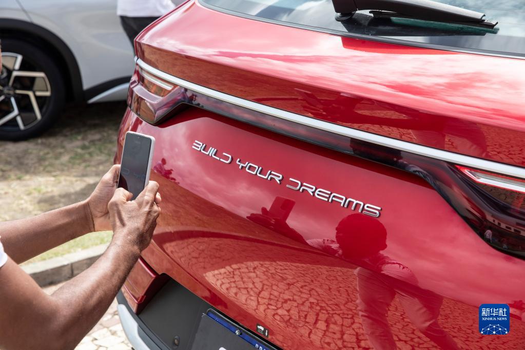 7月4日,一名参观者在巴西巴伊亚州首府萨尔瓦多用手机拍摄一款比亚迪纯电动汽车。新华社记者 王天聪 摄