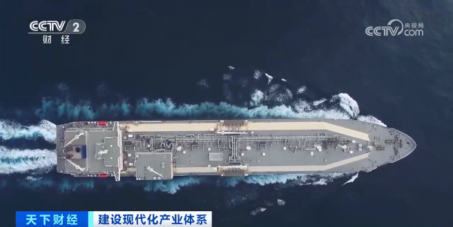 中国船舶江南造船数字化设计主管 王杰:我身后这艘海巡160,是第一艘无纸化建造的船舶。使用了三维模型技术,所以它的整个制造工时缩短了60天。