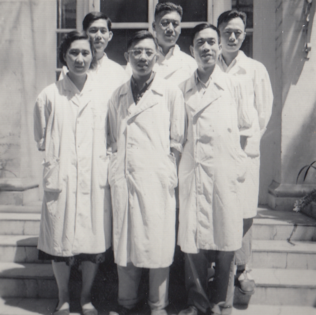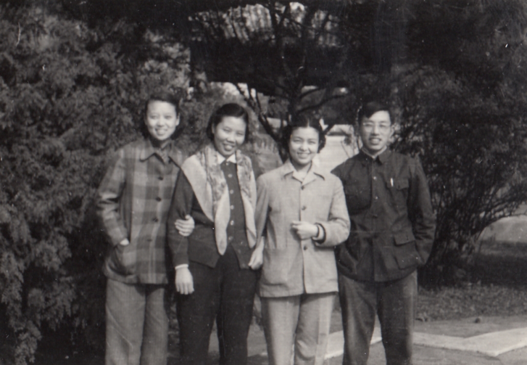 ▲1958年,赖钦声(右一)与口腔科团小组同志合影于协和小花园