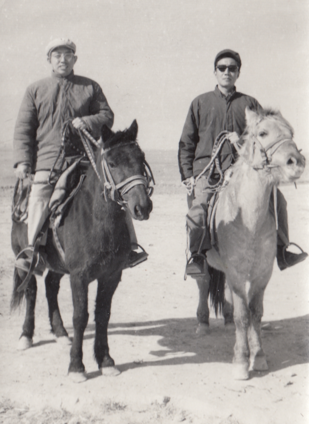 ▲1974年,赖钦声(左)与吴葆桢(右)在前往牧民蒙古包途中