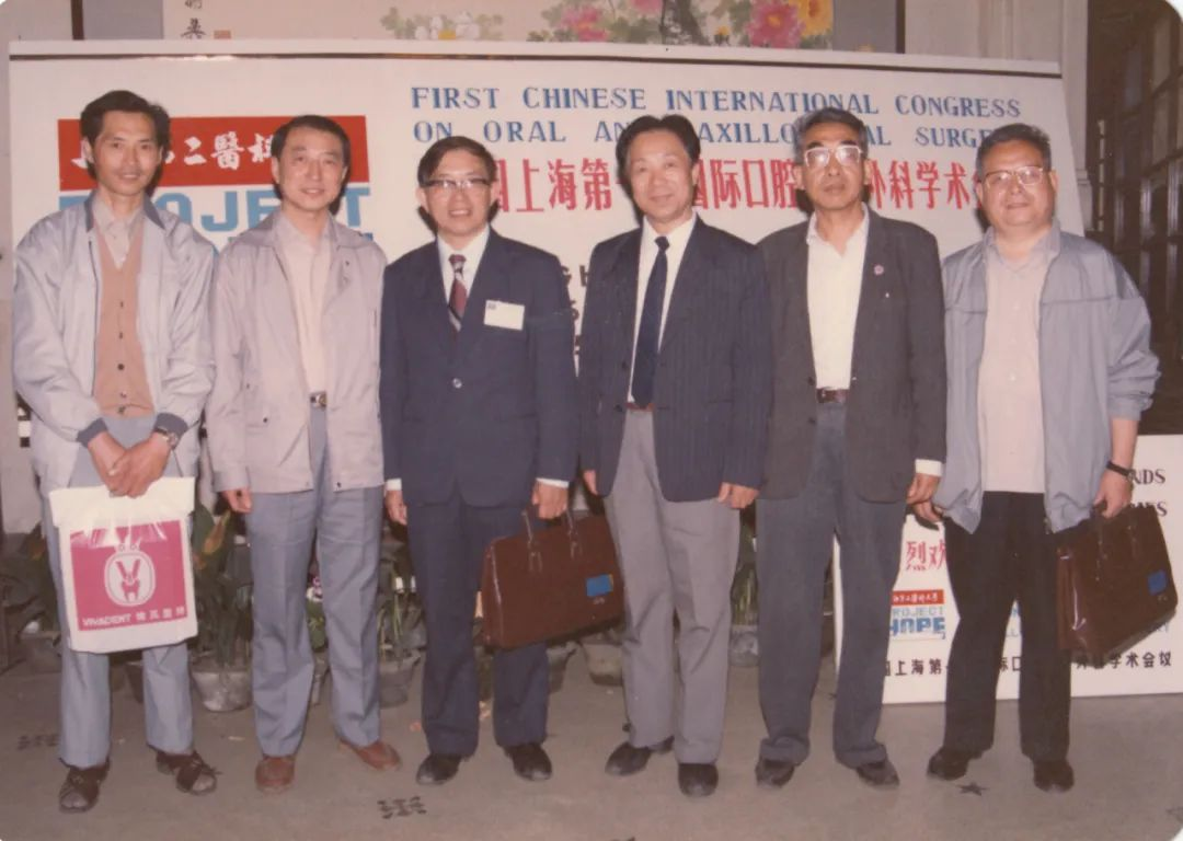 ▲1988年,赖钦声(左三)在上海参加国际颌面外科学术会议