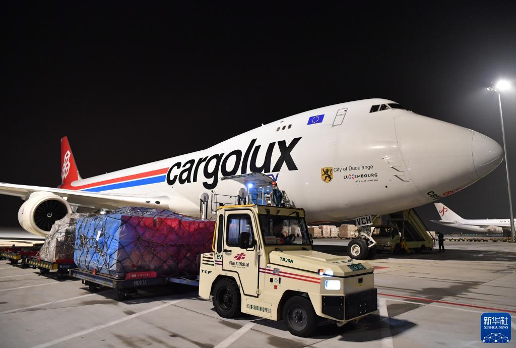疫情期间,郑州-卢森堡航线不但不停飞、不断航,还增加了航班,为中欧间特殊物资运输提供支持。在此期间,印有“友谊无国界、天涯若比邻”寄语的50万只医用外科口罩和4500件医用防护服等防疫物资从郑州搭载全货机飞抵卢森堡。