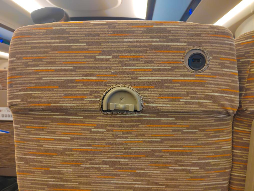 这是9月4日拍摄的福厦高铁“复兴号”智能动车组二等座座椅上的USB充电接口。新华社记者 周义 摄
