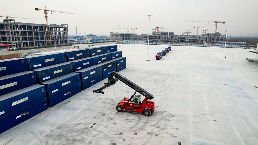 12月23日,哈萨克斯坦西安码头项目正式落成投用。新华社发