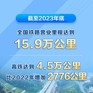 新华社北京1月9日电(记者樊曦)记者9日从中国国家铁路集团有限公司工作会议上了解到,截至2023年底,我国铁路营业里程达到15.9万公里,其中高铁达到4.5万公里。