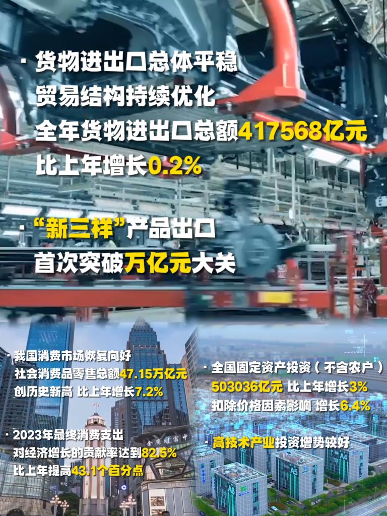 社会消费品零售总额超47万亿元、全国固定资产投资超50万亿元,最终消费支出对经济增长贡献率增至82.5%……向上生长、向好突破,高质量发展力量不断积蓄。