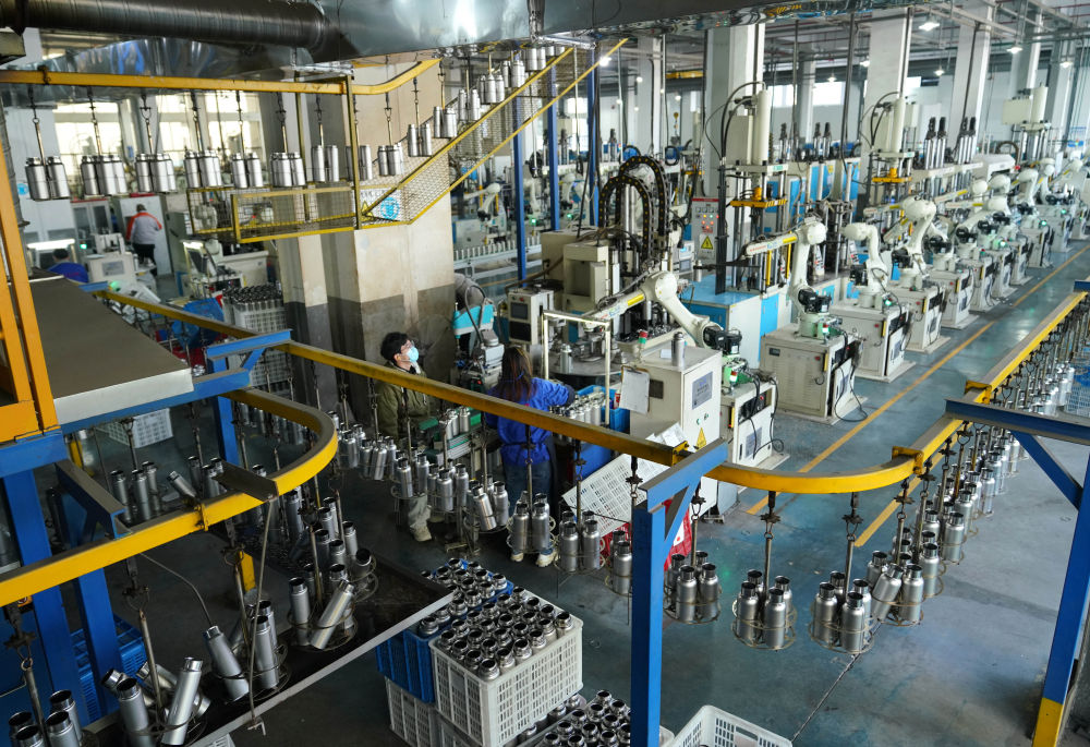 这是2023年12月21日在浙江省永康市一家保温杯生产企业拍摄的自动化生产流水线。新华社记者 韩传号 摄