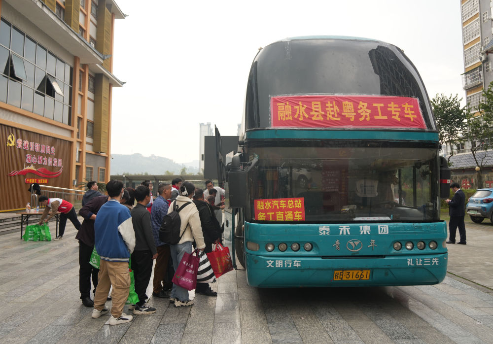 2月21日,广西柳州市融水苗族自治县务工人员乘坐赴粤专车返岗工作。新华社记者 黄孝邦 摄