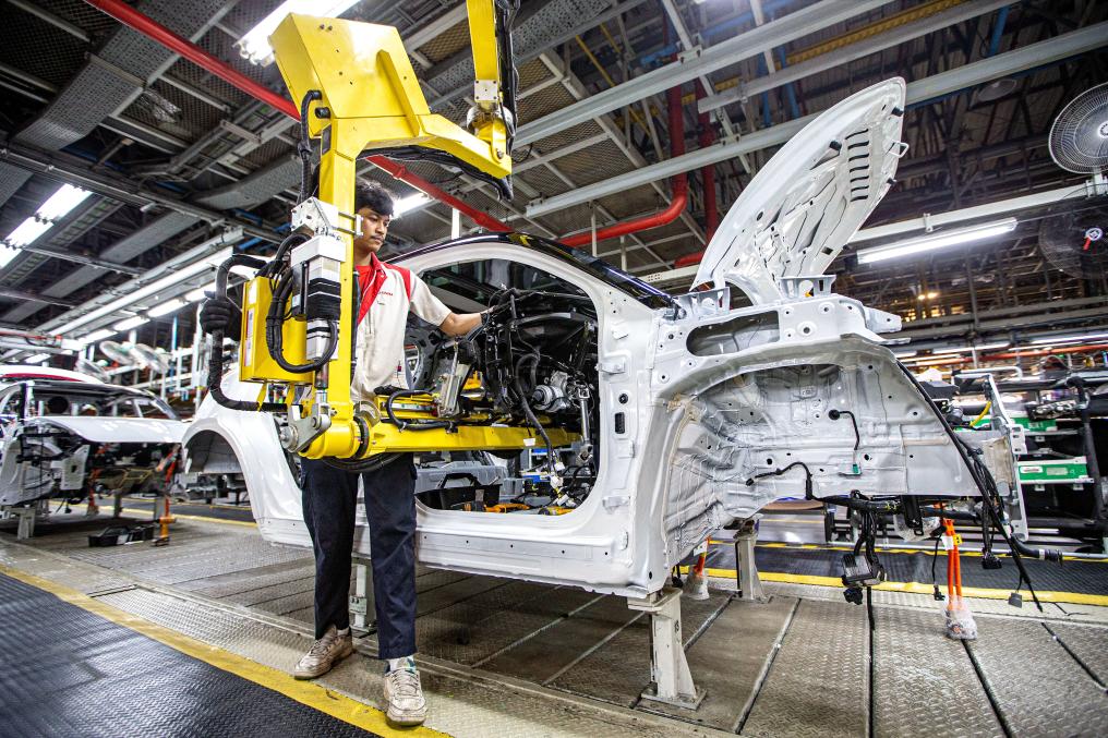 1月12日,工人在位于泰国罗勇的长城新能源汽车制造基地生产车间内工作。新华社记者王腾摄