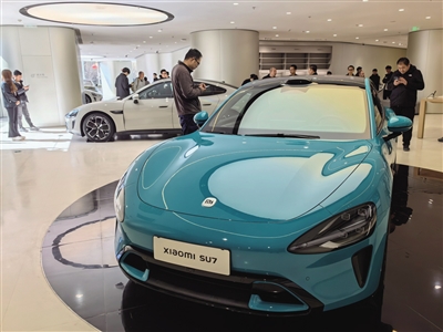 3月28日,在北京一家小米汽车零售门店内,消费者在了解小米SU7汽车。 新华社记者 鞠焕宗 摄