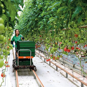 2月11日,在四川省眉山市东坡区西南智慧农业产业园,工作人员在采摘无土栽培的番茄。姚永亮摄/《瞭望》新闻周刊