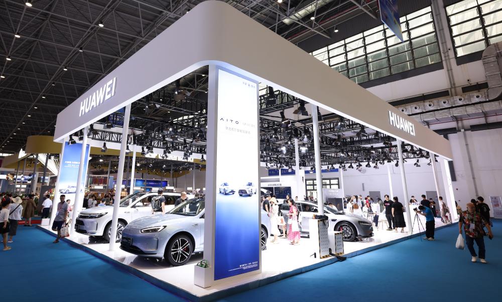 第四届中国国际消费品博览会华为展台(4月14日拍摄)。新华社记者 杨冠宇 摄