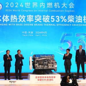 新华社天津4月21日电(记者宋瑞、张建新)20日在天津举办的2024世界内燃机大会开幕式上,中国内燃机行业最新技术成果——由潍柴动力研发的全球首款本体热效率突破53%的商业化柴油机发布。
