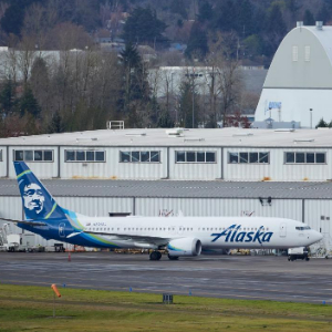 1月6日,美国阿拉斯加航空公司发生事故的波音737 MAX 9型客机停靠在美国波特兰的一处维修站。新华社/美联