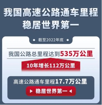 1999年,“黄金周”这个概念第一次出现在大众视野里,在那一年,全国高速公路通车里程刚突破1万公里。截至2022年底,我国公路总里程达到535万公里,其中高速公路通车里程17.7万公里,稳居世界第一。