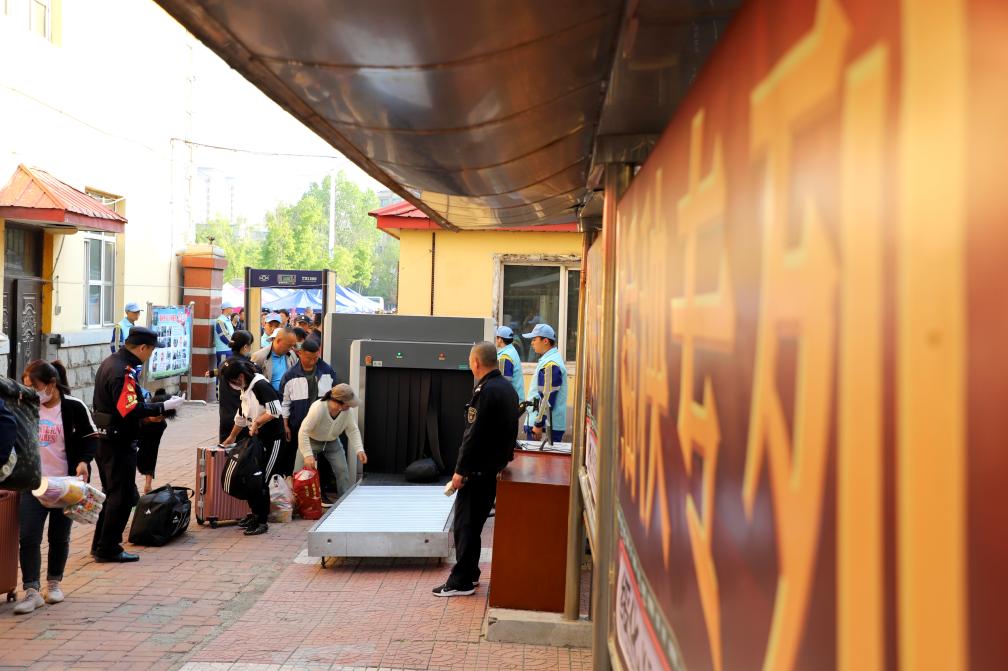 5月7日,农民们在绥化站有序过检。新华社记者 徐凯鑫 摄