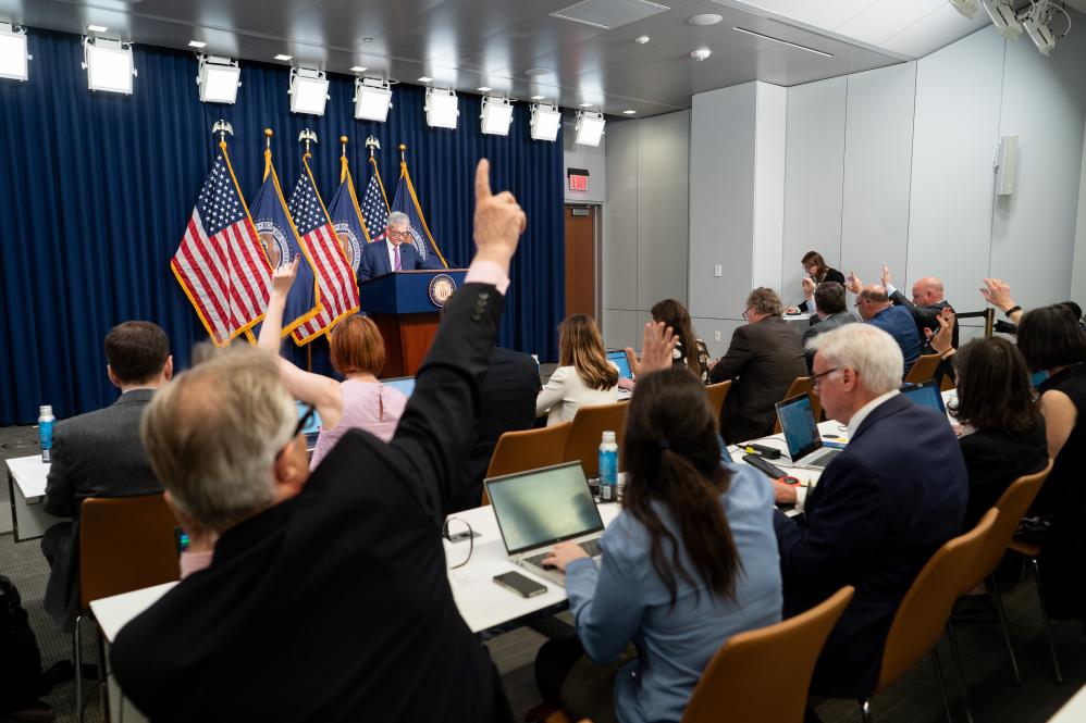 5月1日,美国联邦储备委员会主席鲍威尔在华盛顿出席记者会。新华社记者刘杰摄