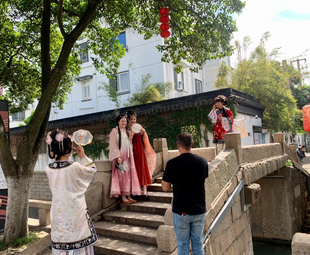 我穿着唐朝的衣服在苏州平江路漫步,很快有几个年轻人和我合影,并夸赞我穿得像中国诗人李白。
