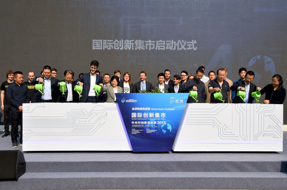 2018年10月13日,中关村创业大街举办国际创新集市。这是嘉宾启动国际创新集市活动。(资料图片) 新华社记者罗晓光摄