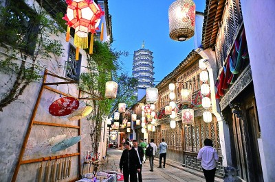 游客在浙江桐乡市濮院时尚古镇内游览。新华社发
