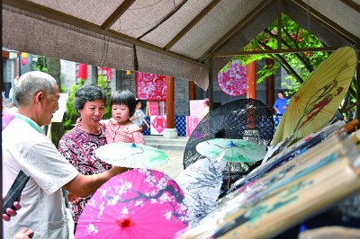 游客在湖南郴州长卷文旅城选购商品。新华社发
