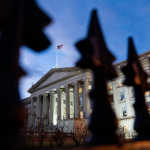 这是2023年1月20日在美国首都华盛顿拍摄的财政部大楼。新华社记者刘杰摄