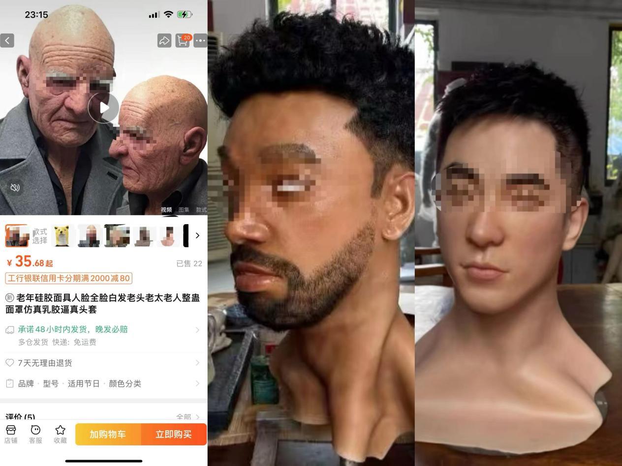 电商平台上出售各式人脸面具,价格从数十元到数千元不等。