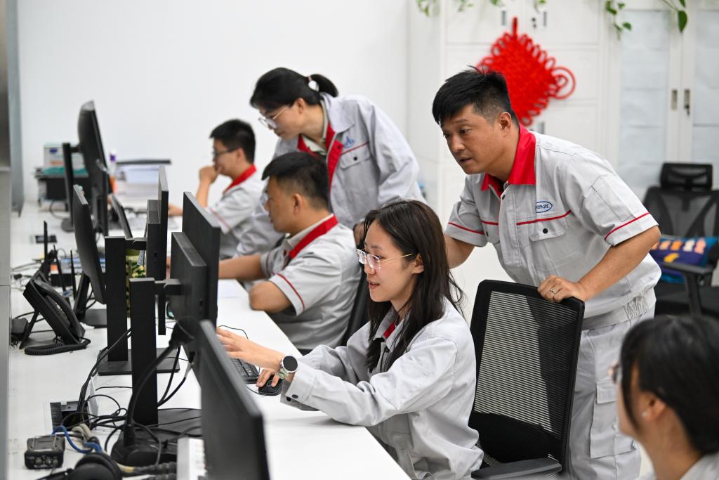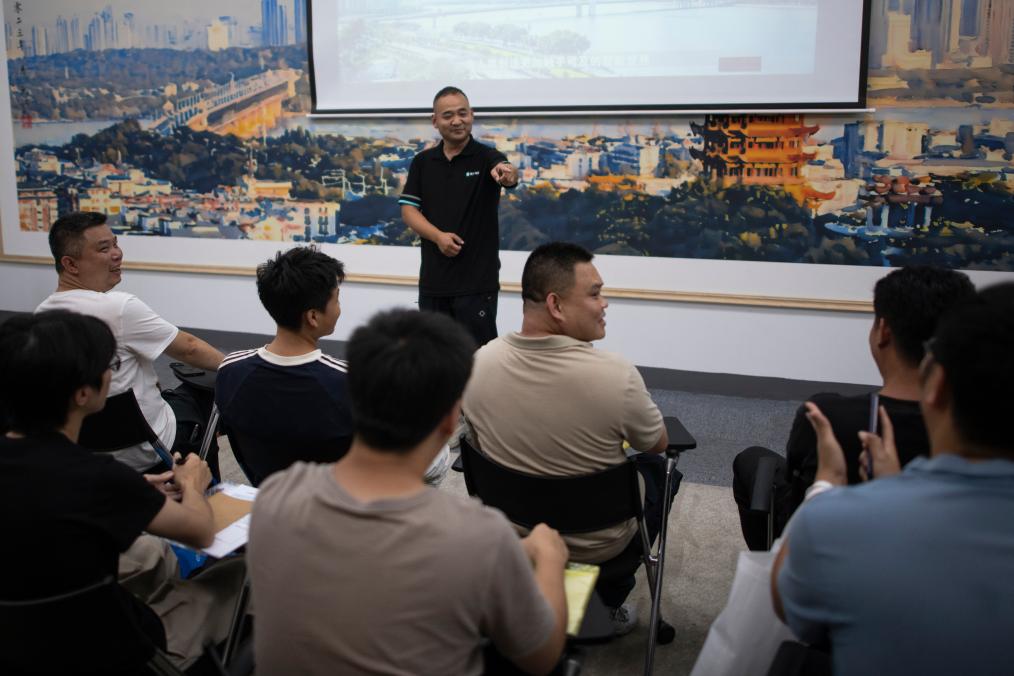 智能网联汽车测试员李成(中上)在给新员工培训授课(7月4日摄)。